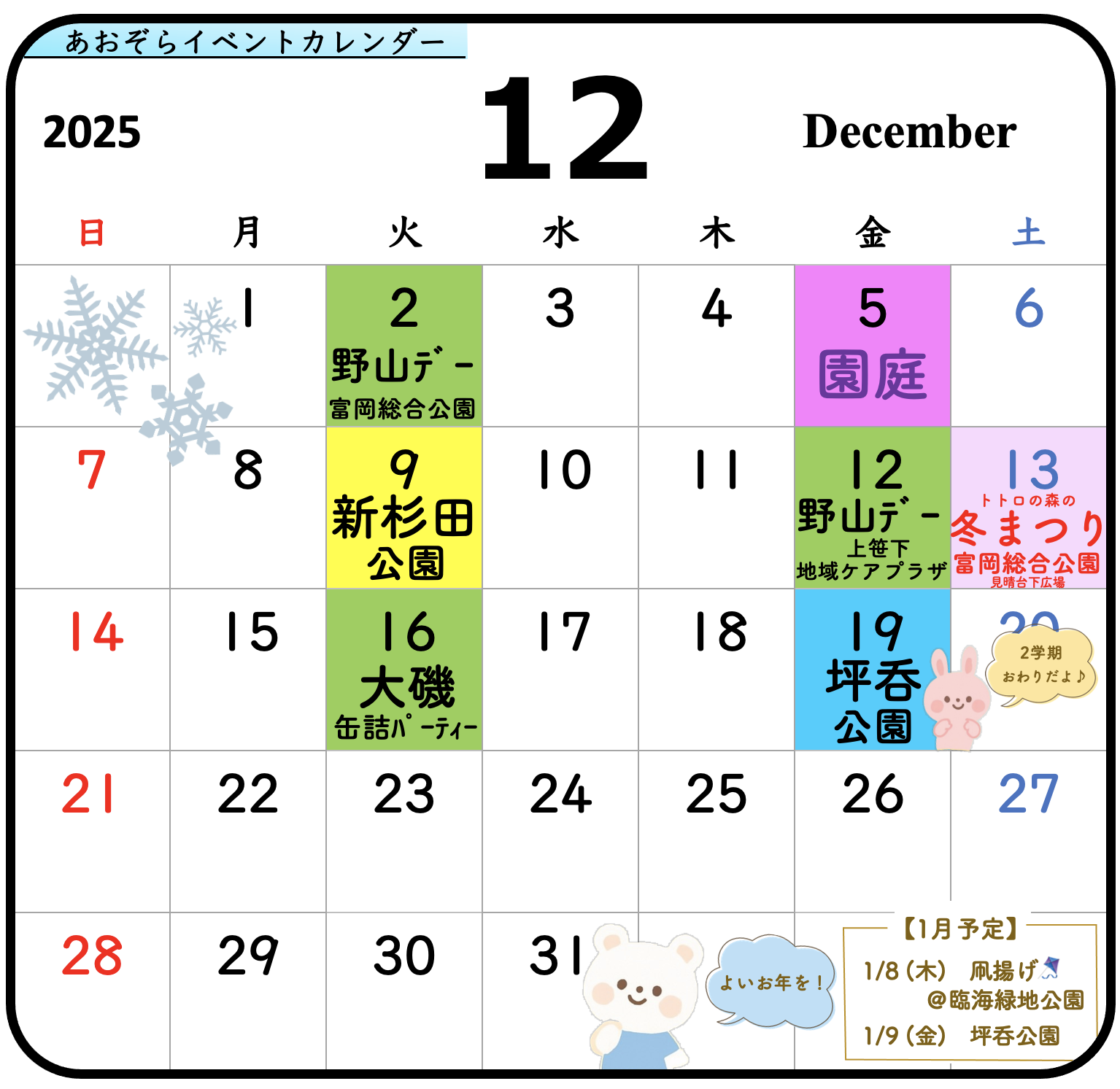 今後の あおぞらトトロ の予定